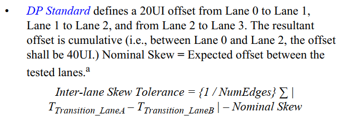根据这个定义就可以大概推断到,Interpair skew出现大于20UI的偏移是不大可能的,除非是lane的编号出现了错误。
