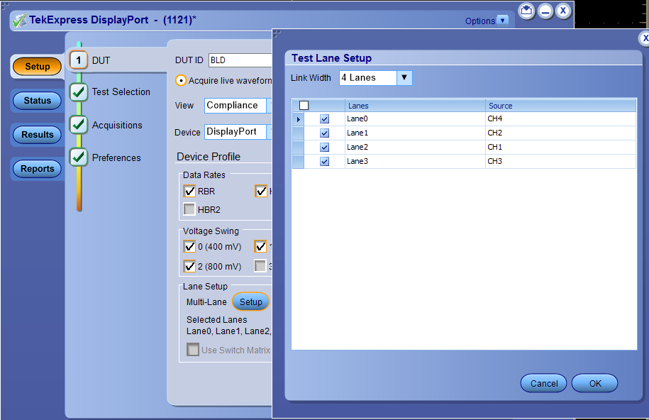 有了这个对应表,剩下来的事情就简单了,只需要在Displayport一致性测试软件中指定一下连接的lane就可以了,这样测试出来的结果不管是Pass还是Fail都可以确定得到的结果是真实可信的。